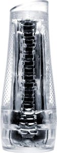 With the frenulum being the most sensitive part of the penis, each section of the mighty Throttle (once the Ignition), is designed to titillate this part, with the front and final section proving most ecstatic. On entry, your crown is lightly twisted, replicating the flicking effect of a tongue slowly working its way up your shaft. More swirly and knobbly sections follow, but as you work your way through the chambers into final piece of the resistance, as expected, a gripping throaty gulp awaits. The Throttle, while not as hard hitting as the Turbo Thrust’s 2 rings of torment, is a very long, spirally, tight ribbed affair with suspended entry points, meaning multiple insertion holes. PROS