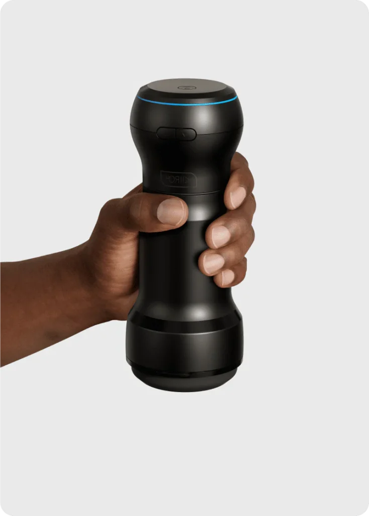 Light as feather, under 400g, it immediately feels robust and quite wide with its spirally non-anatomical entrance, and also very discreet. Holding a full-size Feelstar in its full glory after unwrapping, might leave you with a sense of panic as to where to hide it, but unpacking the Kiiroo Feel Pocket Stroker won’t bring on any sudden worry. You can park this diminutive dong sucker anywhere and it’ll likely pass as a handtorch or a bluetooth speaker.
