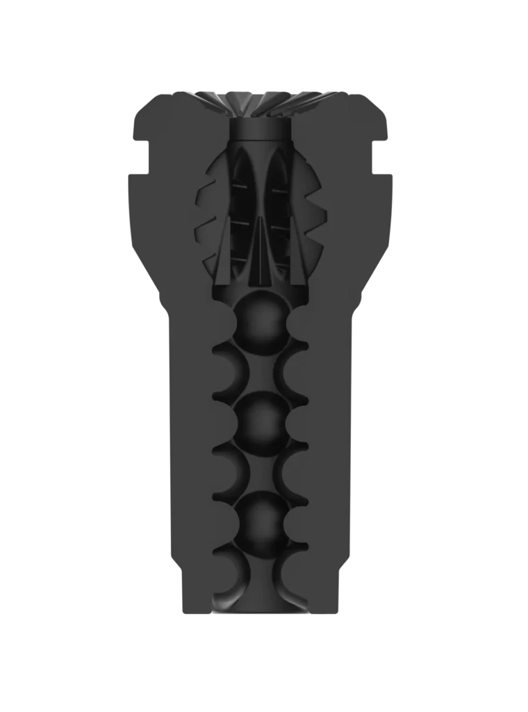 Before engorging however, taking the chill out of the chamber is a must, so immersing it under some warm water for a minute will help you and the TPE sleeve coalesce. Drooling your own watery lube over it once it’s back in its armour goes without saying. You can try a DIY H2O lube if you’re running low. No oils or silicone lubes on this dark outing.