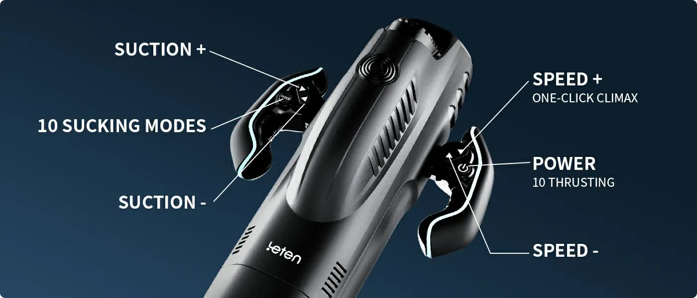 The Leten Storm’s suction works really well. The suction modes have a way of letting the air out to release you, push you out, then pull you back in again. If you want even firmer expansions and contractions, press and hold the suction button down until you hit super-suction mode!