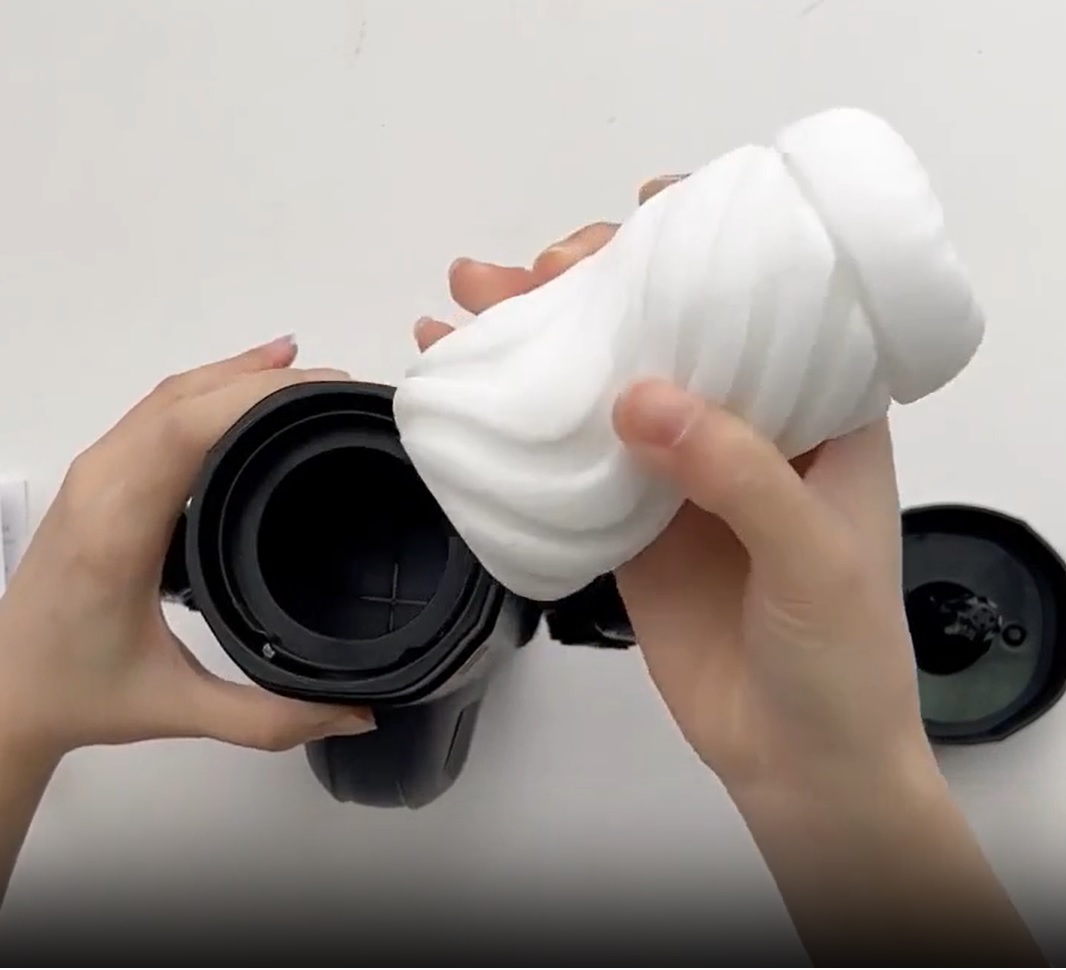 As it thrusts your column, the vacuum inside generates a suction, and swallows you from your glans to your balls, replicating the sensation of a vaginal orgasm. The suction then squeezes the sleeve tighter, gripping it around your fella, making it feel like a deepthroat as it frenetically pummels your penis.