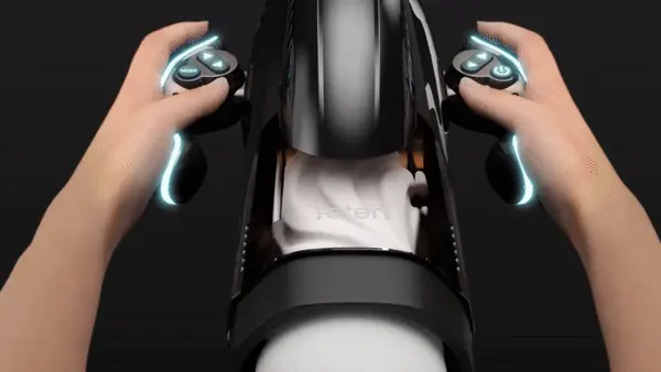 This 4-in-1 BJ machine has racing car steering so you can lie down, prop your head up and press play. It’s devilishly relaxing. On your right you have your 10 “thrust” patterns and your up/down speed dials, and on your left 10 “suction” frequencies, and their respective gears.