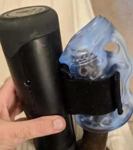 It’s a Fleshlight mount for the Handy that doesn’t require any straps. - Try an Elastic Cinch Strap (46 cm x 5 cm) on Amazon, roughly $11.